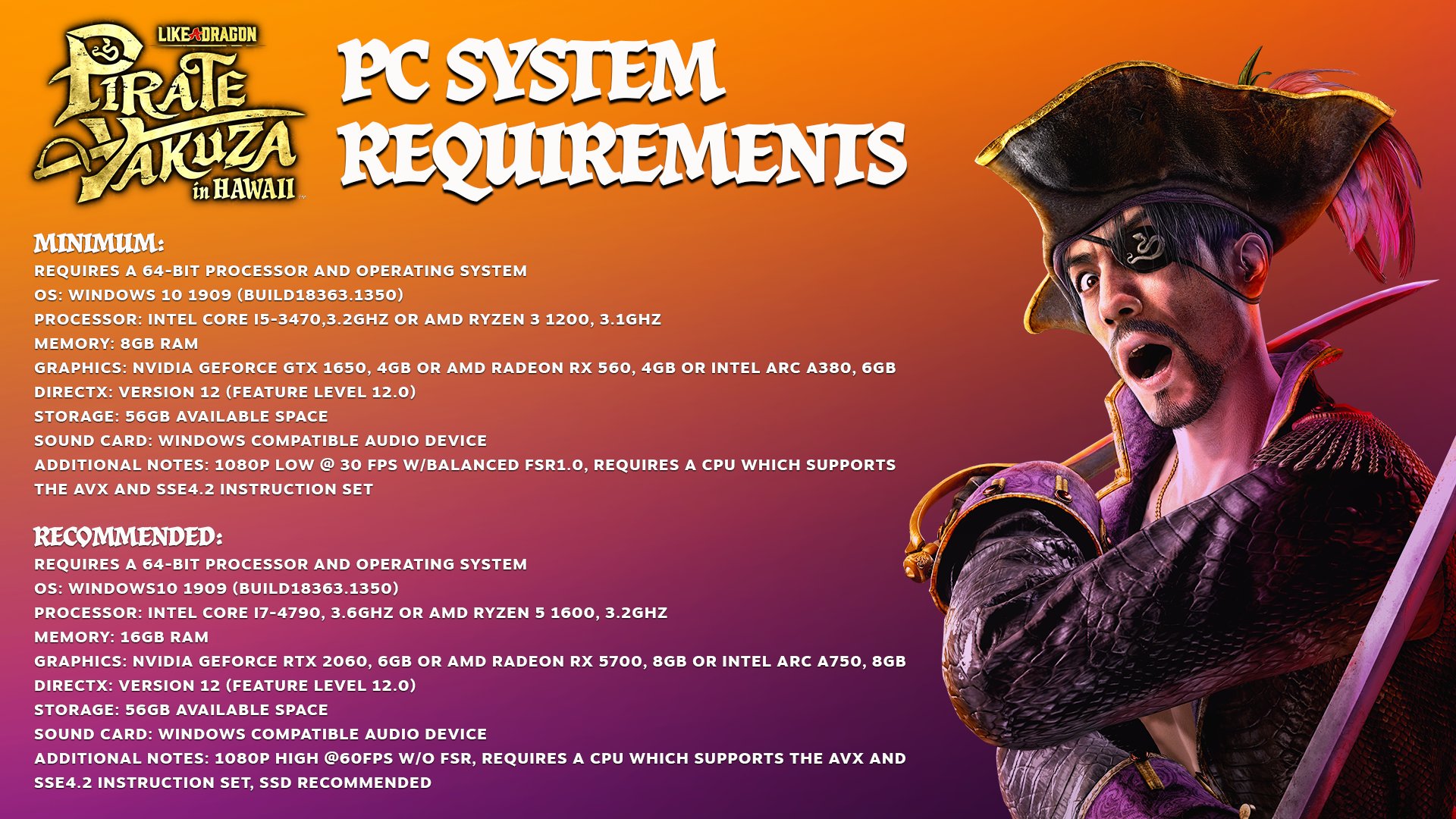 Εάν σκοπεύετε να περιπλανηθείτε στον κόσμο του Like a Dragon: Pirate Yakuza in Hawaii στον υπολογιστή σας, είναι επιτακτική ανάγκη να βεβαιωθείτε ότι ο υπολογιστής σας είναι έτοιμος να υποδεχτεί τη δράση και την περιπέτεια στο εξωτικό σκηνικό της Χαβάης.