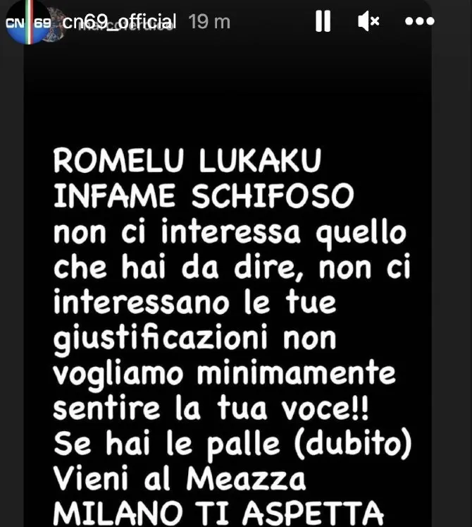 Σε αυτό, ο Βέλγος επιθετικός χαρακτηρίζεται “αηδιαστικός” και το μήνυμα αναφέρει τα εξής: “Δεν μας ενδιαφέρει αυτό που έχεις να πεις. Δεν μας ενδιαφέρουν οι εξηγήσεις σου, δεν θέλουμε να ακούσουμε καν τη φωνή σου. Αν έχεις τις… μπάλες (αμφιβάλλουμε) έλα στο Μεάτσα. Το Μιλάνο σε περιμένει”. Ένα μήνυμα που καθιστά σαφές εκ των προτέρων ότι ό,τι κι αν πει ο πρώην επιθετικός των Νερατζούρι δεν θα γίνει δεκτό. Ένα μήνυμα που επίσης καθιστά σαφές ότι ο αγώνας της 29ης Οκτωβρίου θα έχει ακόμη μεγαλύτερο ενδιαφέρον. Δεν παίζονται μόνο οι τρεις βαθμοί εκείνη την ημέρα, αλλά θα είναι θέμα τιμής για τις δύο πλευρές να πάρουν τη νίκη.
