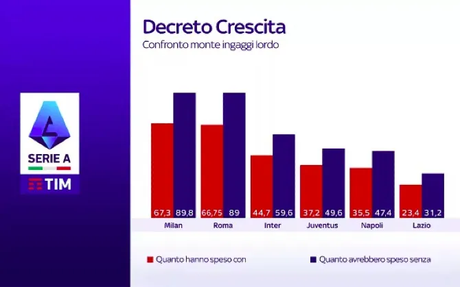 Η Μίλαν και η Ρόμα είναι οι δύο ομάδες που θα επηρεαστούν περισσότερο από την κατάργηση των φορολογικών ελαφρύνσεων. Με τον νέο νόμο, το συνολικό κόστος των μισθών των παικτών της Μίλαν ανέρχεται στα 67,3 εκατ. ευρώ, ενώ για την Ρόμα είναι 66,75 εκατ. ευρώ. Χωρίς τον νόμο, αυτά τα ποσά ανέρχονται αντίστοιχα σε 89,8 εκατ. ευρώ και 89 εκατ. ευρώ ετησίως. Αντίθετα, για Ιντερ, Γιουβέντους, Νάπολι και Λάτσιο η επίπτωση είναι μικρότερη, κοντά στα 12 εκατ. ευρώ.
